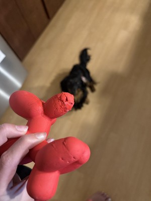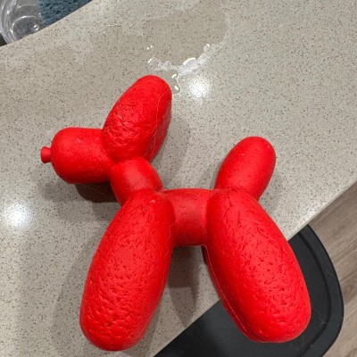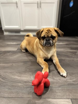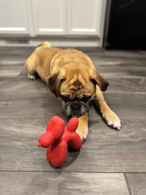 A: The toy is designed to resemble a classic red balloon puppy, appealing to dogs.