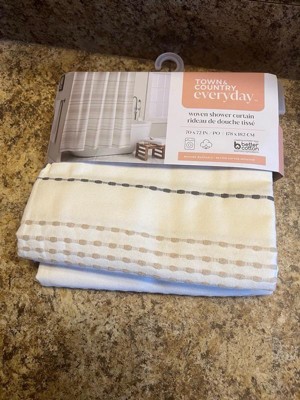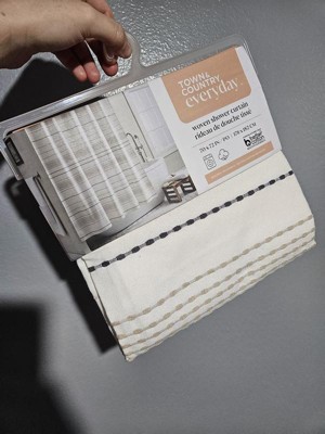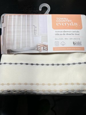 [This review was collected as part of a promotion.] Thank you influenster and town & country everyday for this shower curtain it’s a woven stripe cotton-rich breathable fabric. The quality of this is a1. It’s very sturdy. The price point for this is worth it. Color of this goes perfectly in my bathroom