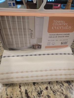[This review was collected as part of a promotion.] This shower curtain from Town and Country is absolutely gorgeous and blew my expectations out of the water! I love the cotton feel to it and it’s very durable! Beautiful textured woven stripe and really made a difference in the look of my bathroom! Fit my shower rod perfectly! I love it so much!