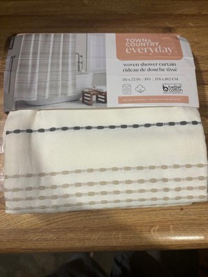 Transform your bathroom into a sleek and contemporary space with the Town & Country Everyday Solana Textured shower curtain. Crafted from soft woven stripes, this shower curtain brings a minimalist touch to your bathroom decor. Made from a cotton-rich fabric, it instantly elevates your shower or bathroom ambiance with its clean and modern aesthetic. The Solana Textured Woven Stripe 70"x72" shower curtain offers a timeless modern look with durability to last. Reinforced top hem stitching prevents tears. This shower curtain is made with cotton-rich fabric, and the woven stripe pattern adds simplicity with a touch of luxury to any bathroom.