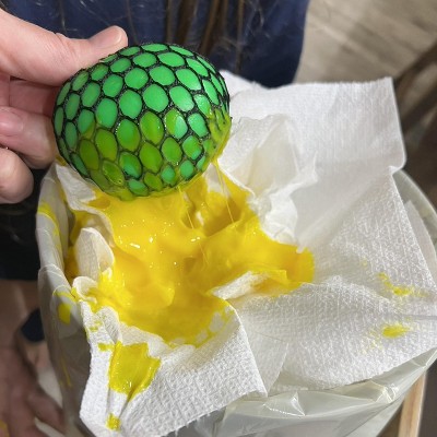 My daughter bought this with her own Christmas money and after 2 hours of squeezing it the ball popped and the slime came out!! Waste of money