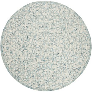 Introduce a touch of elegance to your space with this stunning 4-foot round area rug in a calming blue and ivory palette. Crafted with both wool and cotton, this hand-tufted masterpiece offers a perfect balance of style and comfort. The transitional design, originating from India, seamlessly blends with both traditional and contemporary decor themes, offering endless versatility. With a height of just one quarter inch, it fits beautifully under furniture, adding warmth and sophistication to any room. Enjoy the luxurious texture provided by the blend of materials, enhanced with a subtle latex finish. This rug provides a foundation of style and comfort for your home.