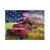This ready to hang, Wood Slat Art by Trademark Fine Art features a depiction of a vintage red tractor with an American flag in the background. Artwork is digitally printed with high end UV inks directly onto natural hardwood planks that have been primed white for a more vibrant, colorful image. This pleasant, real wood piece highlights the texture of the wood creating a truly unique piece of art with no two pieces looking alike. The artwork arrives unframed and is ready to hang with wall hanger already installed to the back.