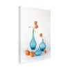 - This Lydia Jacobs Orange And Blue Delight outdoor canvas art by X1 Brand is sure to complement any outdoor space with its Modern & Contemporary style featuring a group of three blue vases with orange flowers.
