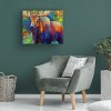 This ready to hang, gallery-wrapped art piece features a moose walking through a forest.Most days, one would find Marion Rose putting on her favorite music or playing an old video before settling in to paint for the day in her spacious studio, especially once the winter chill set in. Her work is influenced by past masters such as Joaquin Sorolla, Tom Thomson, Carl Rungius, Bob Kuhn, and many others that work today in a variety of subject and media. She also studied printmaking, life painting and drawing in college in her 30's. Her subjects come from her life of traveling enthusiastically as often as she could, both close to home or across the ocean. Sketching and studying animals were a favorite pastime, setting an excellent foundation for creating authentic work. Texture and richly colored paint applied generously by knife or brush strokes capture the essence of a subject's spirit and demeanor.Giclee (jee-clay) is an advanced printmaking process for creating high quality fine art reproductions. The attainable excellence that Giclee printmaking affords makes the reproduction virtually indistinguishable from the original piece. The result is wide acceptance of Giclee by galleries, museums, and private collectors. Gallery wrap is a method of stretching an artist's canvas so that the canvas wraps around the sides and is secured a hidden, wooden frame. This method of stretching and preparing a canvas allows for a frameless presentation of the finished painting.