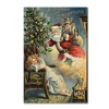 This ready to hang, gallery-wrapped art piece features a vintage illustration of Santa Claus sneaking by a girl sleeping in front of the fireplace.These posters got their start in the late 1800s when brands hired artists and illustrators to create their ads and announcements for various products such as chocolates, alcohol, soap, or cigarettes. This was the time when the development of mass printing emerged and this new technology allowed for low-cost reproductions with vibrant colors. These works on posters became more affordable than original art and grew in popularity. This new industry attracted many aspiring artists looking to generate revenue from their work. The commercial success of these posters began the trend of the vintage poster, which has continued into the 21st century.Giclee (jee-clay) is an advanced printmaking process for creating high quality fine art reproductions. The attainable excellence that Giclee printmaking affords makes the reproduction virtually indistinguishable from the original piece. The result is wide acceptance of Giclee by galleries, museums, and private collectors. Gallery wrap is a method of stretching an artist's canvas so that the canvas wraps around the sides and is secured a hidden, wooden frame. This method of stretching and preparing a canvas allows for a frameless presentation of the finished painting.Whether it's a contemporary, rustic, modern, or traditional style decor, Trademark Fine Art offers a variety of high-quality, carefully built wall art that will surely complement any style. We provide an abundance of art themes that range from fascinating abstracts to breathtaking landscapes, in an assortment of sizes that will certainly bring excitement to any area of your home. From the bedroom to the living room, or even the office, Trademark Fine Art makes professionally handcrafted, ready to hang wall decor that will be admired for years to come!