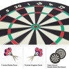 - This dart set comes with a full-size paper wound dartboard with a mounting bracket built into the board and six 17g brass tipped darts