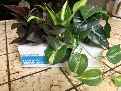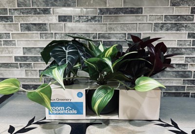 Bring nature indoors effortlessly with this 3-Piece Traditional Ivy Multipack Plant Set from Room Essentials™. This set features three faux plants housed separately in a white, green, and red container designed in a round shape. These plants mimic the real ones and add a touch of greenery to your indoors with zero or minimal upkeep. Suitable for indoor use, you can place these faux plants on the console table, mantel, or entryway for a stunning display.