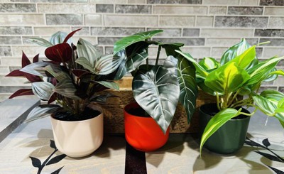 [This review was collected as part of a promotion.] This is a really nice set of faux plants and for a great price as well! The plants are good quality and look real unless you inspect them closely. The only thing I don’t like is the color of the red pot because it looks kind of cheap. I wish the color was more toned down. Overall I think this is a great way to add greenery to your space without adding another plant to care for. I received an incentive to write this review.