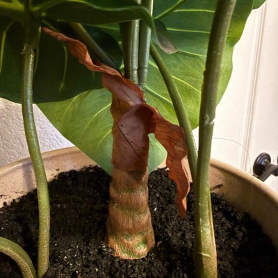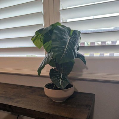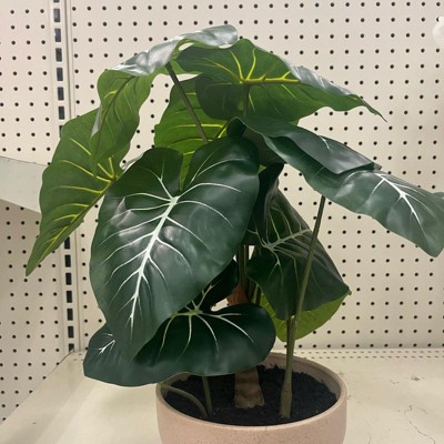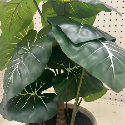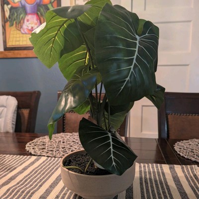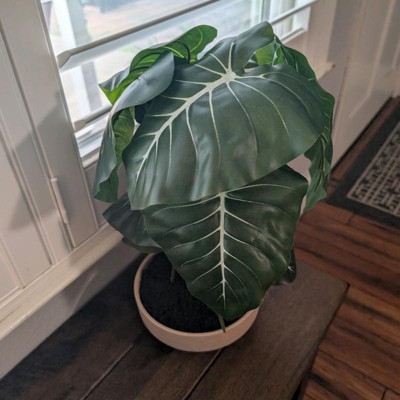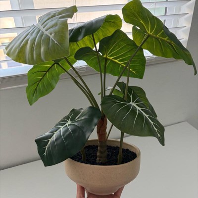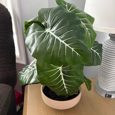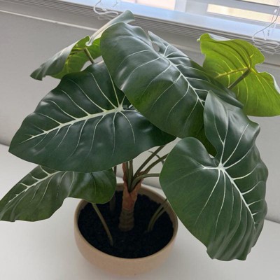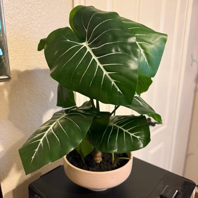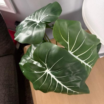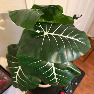 [This review was collected as part of a promotion.] This plant is great! I love artificial plants all over my house especially in smaller rooms or bathrooms. I put this in one of our spare bathrooms on the sink. It’s a little larger so it takes up a quite a bit of space but no one uses it too often so there was less space I had to decorate. The leaves are very bright and look similar to the color of a real Alocasia plant.