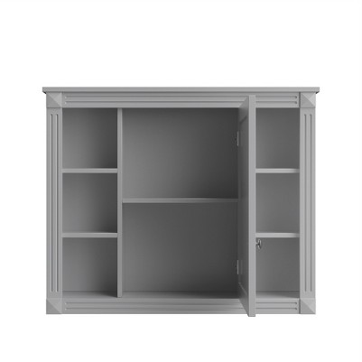 - The mirrored cabinet doors hide personal items behind reflective surfaces while maintaining easy access. Adjustable shelves accommodate toiletries, medicines, or cosmetics of varying sizes. This clever design maximizes vertical space without sacrificing style, perfect for small bathrooms needing both storage and mirror functionality in one compact unit.