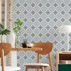 A full roll of this product is 20.5 inches wide and 216 inches long. A full roll can cover up to 30.75 square feet depending on the design match and pattern repeat. A sample of this product is 8 inches by 11 inches. Large Tile Blue showcases a symmetrical, vintage-inspired tile pattern with intricate floral and geometric motifs. Each square is adorned with a central decorative element, surrounded by delicate ornamental details that create a harmonious, repeating design. The balanced combination of curves and structured lines gives it a classic and elegant appearance, suitable for various interior styles.