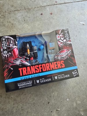- TRANSFORMERS: DEVASTATION ACTION FIGURE 2-PACK: This Transformers Studio Series toy includes highly articulated Ground Soldier and Elite Seeker action figures with game-inspired deco and details