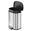 Trash Can - 50L/13.2 Gal D Shape Stainless Steel Kitchen Recycling Trash Can, Step-On Garbage Can with Soft-Close Lid & Removable Inner Bucket, Home Office Hands-Free Foot Operated Waste Bin