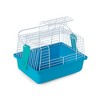 Prevue Pet Products Travel bird/ small animal cage in Blue SP1304BLUE is a compact carry bird cage for small birds and small animals. Our bird/small animal cage features a large top-opening door and convenient carry handle. Our bird/small animal cage includes a removable plastic perch which can be taken out if used for transporting small animals such as hamsters or gerbils. Measures: 9" Long, 5 5/8" Wide and 6 1/8" High with 3/8" wire spacing. Base alone is 2 7/8" deep.