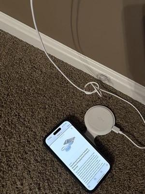 [This review was collected as part of a promotion.] It is nice and compact, but I can’t get it to work. It seems like it’s charged but when I lay my phone on it nothing happens. Same with my AirPods. I won’t be using this.