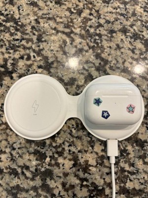 [This review was collected as part of a promotion.] I received this product for free in exchange for my review.I always prefer to travel light and if I can avoid a tangle of cords, that’s the best! I’ve had chargers like this before, but they very quickly lost their charging power and ended up in the trash. So far, this charges quickly and I like that I can charge two devices at once. However, my AirPods don’t seem to respond to the pad for very long - but that has happened with other charging pads, so it may just be the pods themselves that have the issue and not the charger itself.