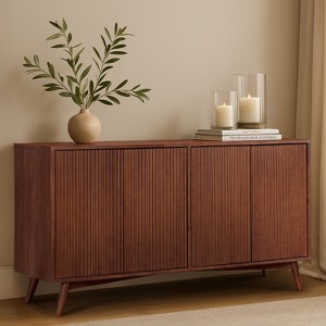 Tremolo Modern Boho 4-Door Sideboard with Solid Wood & Contemporary Fluted Fronts - Teamson Home