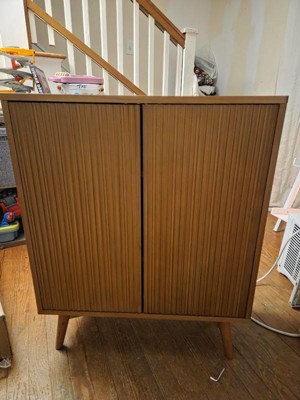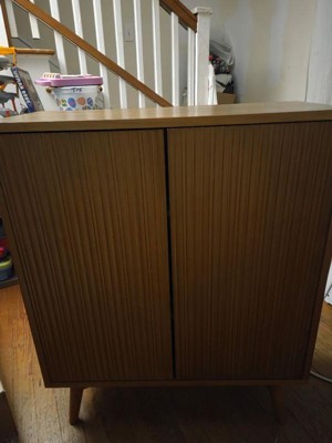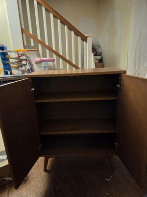 [This review was collected as part of a promotion.] This cabinet is gorgeous! It's got a slightly retro look which i love, it's heavy and seems durable. There are 2 adjustable shelves inside, push to open doors with a magnetic close. It's the perfect accent piece for my livingroom. I would love to see what else this brand has to offer.
