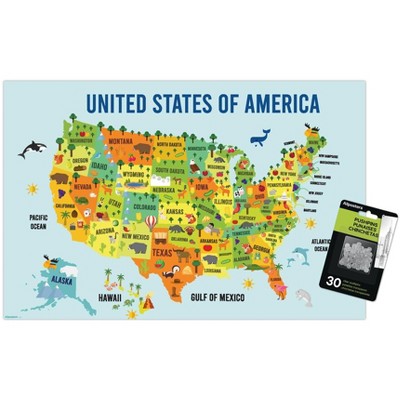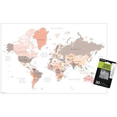 Trends International Map - Rustic Unframed Wall Poster Print Clear Push Pins Bundle 14.725" x 22.375"