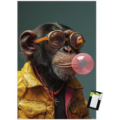 Trends International Ray Heere - Chimpanzee Blowing Bubble Unframed Wall Poster Prints