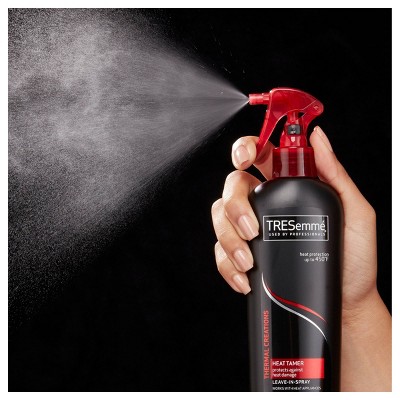TRESemmé Thermal Creations Heat Tamer works as a heat protector and stands up to flat irons and curling irons by guarding against heat and frictionThis thermal protection for hair is a heat protectant spray that enhances hair's flexibility to re-form and can be used as a flat iron sprayThermal Creations heat protection spray for hair is heat-activated to help guard against harsh styling damage and hold your hair shapeThis heat protector tamer spray designed for thermal protection for hair also works to leave hair shiny and enviably softProfessional, affordable salon-quality heat protectant for hair heat protection without the salon price tagTRESemme Thermal Creations Heat Tamer Spray works great alongside our other TRESemmé Thermal Creations Collection products that also provide heat protection for hair