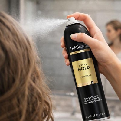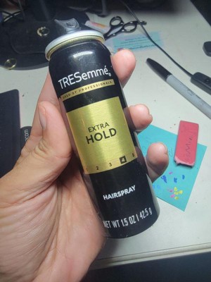 TRESemmé Extra Hold Hairspray This hairspray delivers strong, long lasting hold without making hair stiff or sticky. It keeps styles in place all day while helping control frizz and humidity. I love that it brushes out easily and still leaves hair feeling soft and manageable. A reliable, salon quality staple for everyday styling. No strong scent, affordable, easy to use aerosol can.