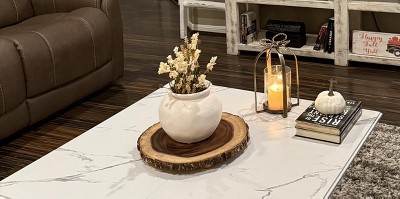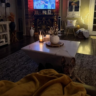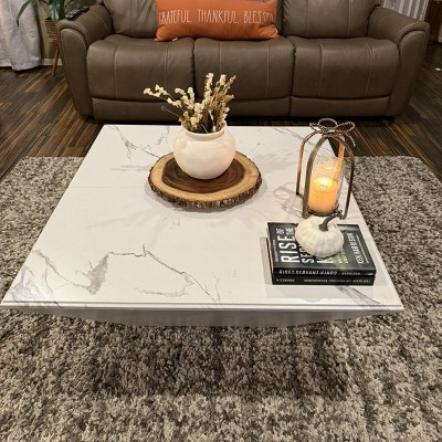 The coffee table features a 35.43-inch square design, and the captivating faux marble top adds a touch of luxury and distinction, with its crisp white hue that blends seamlessly with modern interiors that exude contemporary style and sophistication. Infuse your living room with the sleek elegance of this coffee table.