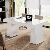 Featuring a large desktop area, the office desk can effortlessly accommodate computers, a variety of work materials, and even small conference meetings. Plus, the spacious legroom promotes a comfortable and efficient workspace. One distinctive feature of this computer desk is its double trapezoid base, contributing not only to the desk's stability but also its visual appeal. Its simple yet elegant design invites a range of uses, from an executive desk to a computer desk, a conference table, a writing desk, or even a dining table, depending on your needs.