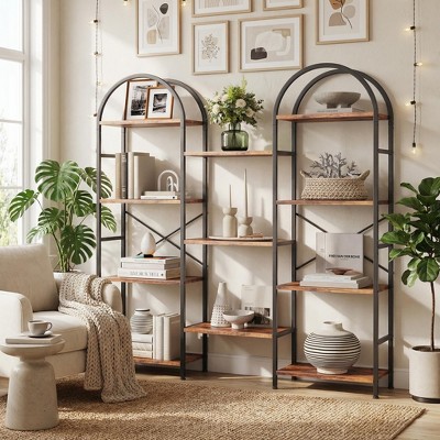 Lantine 55" Wide Oval Triple Etagere Bookcase Rustic Brown