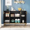 Features a spacious tabletop and 6 storage compartments behind 4 doors. This floor buffet cabinet offers sufficient storage space and keeps your stuffs away from dust. Besides, you can use the spacious cabinet top to store essentials, books, or display photos, plants, decorations and collections. It not only decors your home, but also can keep your room tidy and orderly.
