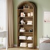 Measuring 11.81" D x 31.5" W x 75.98" H, this 6-Tier arched bookcase offers ample space for organizing books and showcasing collectibles. Blending classic vintage charm with modern sophistication, the soft, flowing arch creates a warm and inviting look.