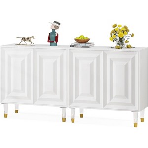 Featuring molded geometric doors of high-gloss lacquer finish, this 4-door storage cabinet exudes simple sophistication. While the acrylic legs continue the cabinets' sleek look that elevates the overall aesthetic and creates a focal point. Brings a finishing touch to your home with this stunning kitchen sideboard cabinet.
