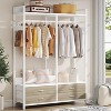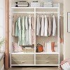 This closet rack with drawers offers spacious space with different functional areas for your clothing and stuff. This garment rack has a 47’’ rod for hanging clothes. The top and bottom shelves, 4 drawers, and 8 hooks are perfect for holding suitcases, baskets, shoes, and bags in good order. This heavy-duty closet organizer has a premium thickened metal frame. The wardrobe rack provides superb stability even holding tons of clothes and accessories.