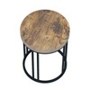 The metal accent table features a metal frame and wood top, wooden board in rustic brown, 17.7 inches in diameter, 23.6 inches in height.