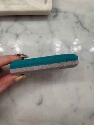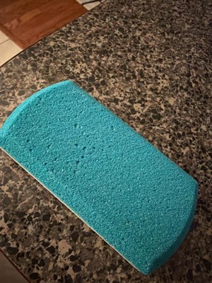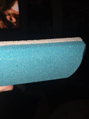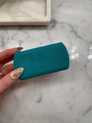 [This review was collected as part of a promotion.] This is the perfect size to keep in the shower. The smaller size helps you have a better grip while using in the shower or after your shower. The blue/greenish colored side does rub off while using it but washes away. It left my feet feeling amazing and soft.