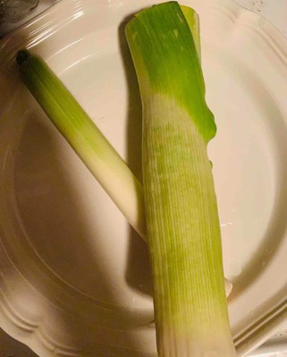 I recently bought leeks from Target, and as mentioned in another review they didn’t look like the picture here. The leeks did not include the green top, but just the white to light green section. I was a little disappointed by this, but they ended up tasting really good in some leek soup I made.