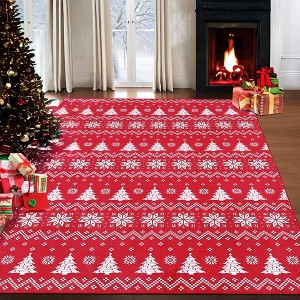 Christmas Snowflake and Xmas Tree Pattern Area Rug Washable Rug