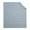 The Levtex Home Trintton Quilted Throw (50x60in.) is crafted from 100% cotton front and back with a cotton-rich fill. Inspired by artisan handwoven textiles, the front showcases bands of geometric and braided motifs in soft blue tones, reversing to a solid cotton back for versatile styling. Perfect for layering on a bed, draping over a sofa, or curling up in a chair, this lightweight throw adds texture and warmth. Machine washable for easy care.