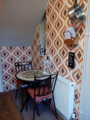 I put this wallpaper up yesterday and I LOVE IT!!!!!! It was so easy to apply, looks fantastic and gives that retro vibe I wanted.
