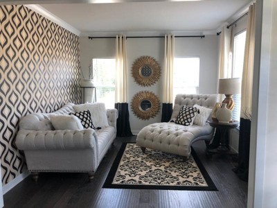 This wallpaper created a perfect accent wall for our home office furnished with a mid century modern desk and a throw back sofa bed with a 70s plaid fabric. This paper features two different textures for added interest. Fun fact: this wallpaper can be seen on a set in the Showtime original series Shameless, in V and Kevin's kitchen. I love it.