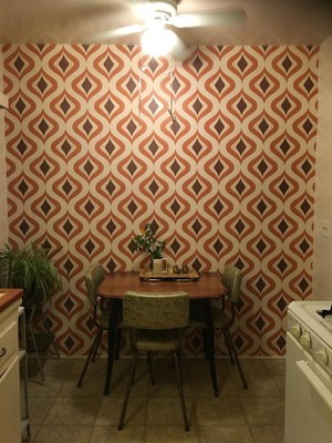 I am so in love with this wallpaper! We were looking for a 70's look for the kitchen and this was exactly what we needed! Colors are great and it has some texture to it! It's amazing! Also putting the paste on the wall made it much easier!