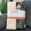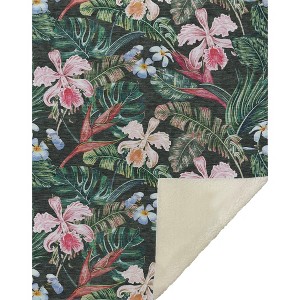 Escape into a lush tropical setting with this jungle-inspired 50″ x 70″ throw blanket featuring bold floral and leaf motifs. Designed in a versatile rectangular silhouette, it brings vibrant botanical energy into living rooms, bedrooms, and covered outdoor spaces while delivering everyday comfort.Crafted from 100% polyester microfiber, the blanket features a luxuriously soft-touch surface paired with a plush backing for added warmth. The oversized 50″ x 70″ dimensions provide generous coverage for relaxing on the sofa, layering at the foot of a bed, or draping over a lounge chair. Fade-resistant construction helps maintain its rich pattern over time.Final crafting is completed in the USA using domestic processing on an imported substrate. Machine washable on a gentle cycle and tumble dry low for easy maintenance. Designed for residential use and backed by a 30-day limited manufacturer warranty.