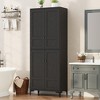 - Vertical Elegance: Standing at 71 inches tall and measuring 27.56 x 13.78 inches, this tall storage cabinet features five tiers and four doors, providing ample space for organizing items. Its narrow design makes it ideal for tight spaces in your home