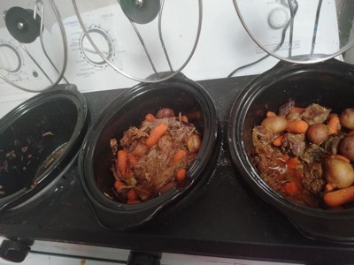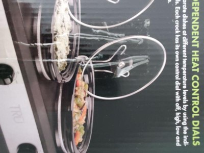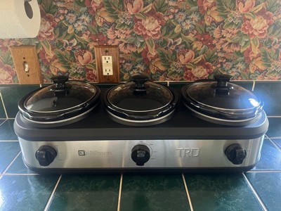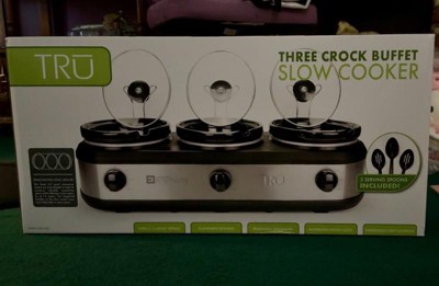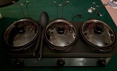 [This review was collected as part of a promotion.] The Tru triple slow cooker has been perfect for parties. Each pan is big enough for large portions and they have their own temperature dials. The set also came with serving spoons. No more using the old foil trays with messy burners!