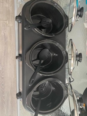 [This review was collected as part of a promotion.] I can’t say enough great things about this triple slow cooker! It’s truly one of a kind. The oval space-saving crocks are easy to remove and clean. There is a built in stand to hold the lids which is awesome because not only is it handy but it’s way less messy. The lids also have a slat in them to hold serving spoons which conveniently come with the product! I like that each cooker has its own heating function so you can have the crocks at different temps for various food items. If you know someone who enjoys hosting, this is the perfect gift!!