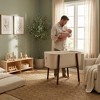 [This review was collected as part of a promotion.] This bassinet is a perfect shower gift for our niece. This is a simple bassinet without a ton of bells and whistles, but the design and simplicity help bring it into the 21st century for a modern aesthetic. Baby hasn’t arrived yet, but it’s a nice piece of baby furniture for their growing family.