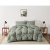 Truly Soft 3pc King Cloud Puffer Comforter Set Green: Modern Microfiber Bedding, Year-Round Solid Pleated Design, 200 Thread Count