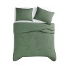 Discover the unparalleled softness of our garment-washed bedding. This incredibly soft fabric not only feels amazing but also features a textured surface that adds a luxurious touch to your bedroom. Ideal for those who value simple comfort, this casual and contemporary collection is available in a variety of colors. The garment washing process not only enhances the softness of the bedding but also gives it a stylish, lived-in look. Made from microfiber, this bedding set is easy to clean and wrinkle-resistant, ensuring long-lasting use. Additionally, it meets the OEKO-TEX Standard 100 Certification, guaranteeing responsible production practices. Trust the Truly Soft brand, which has been delivering quality home products for over 10 years, consistently providing great value. The fabric is 100% microfiber polyester which has been garment washed for extra softness and a relaxed look with a 100% polyester fill. This item is machine washable, but care should be taken to wash in appropriate size equipment to preserve the items quality. Includes: one comforter 104 inches wide by 90 inches long with two king shams 20 inches high by 36 inches wide.