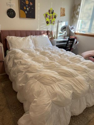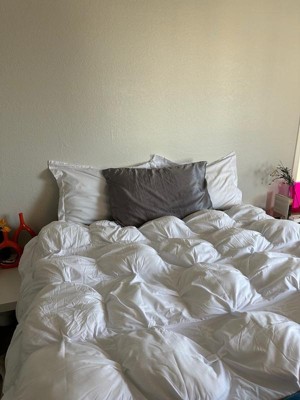 [This review was collected as part of a promotion.] The comforter is so soft and fluffy, it looks and feels like a cloud! The bright white brightens up my room and it just looks so lovely and covers the bed well. It is super comfy to sleep under and keeps me warm, but not too warm. I’m really happy with this item.